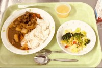 今日は、カレーライス、ブロッコリーサラダ、りんごゼリー、牛乳です。~本でランチ~...