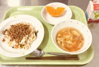 今日は、キムチチャーハン、いかシュウマイ、えのきとチンゲン菜のスープ、牛乳です。...