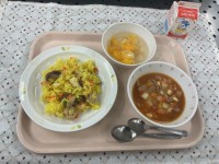 (献立)パエリアミネストローネゼリー入りフルーツポンチ牛乳(メモ)パエリアはスペインのバレンシア地方の郷土料理です。本来は専用の浅いフライパンで具を炒めてから、米・水・ターメリックなどの香辛料を入れて...