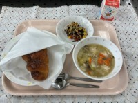 (献立)ココア揚げパン白菜と肉団子のスープ大根とひじきのサラダ牛乳(メモ)今日は人気メニュー、揚げパンでした。冬なので血流を良くして体を温める効果があるココアを使いました。※写真2枚目は肉団子を作って...