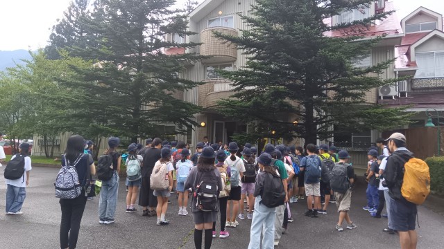 3日間お世話になるホテル、ナチュラルガーデン日光に到着し、開園式を行いました。マナーや感謝の言葉を大切に公共施設で過ごしたいと、児童代表から話がありました。いろいろな経験を通してさらに成長したいです。