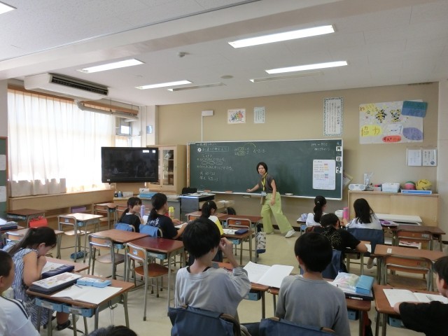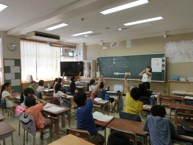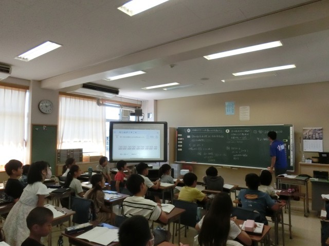 4年生の算数の授業におじゃましました。算数は自分の学習のペースに合わせて3つのクラスに分かれて勉強をしています。どのクラスでも、自分がどのように考えたのかを伝え合っていました。自分でしっかりと考える力を伸ばしてほしいです。