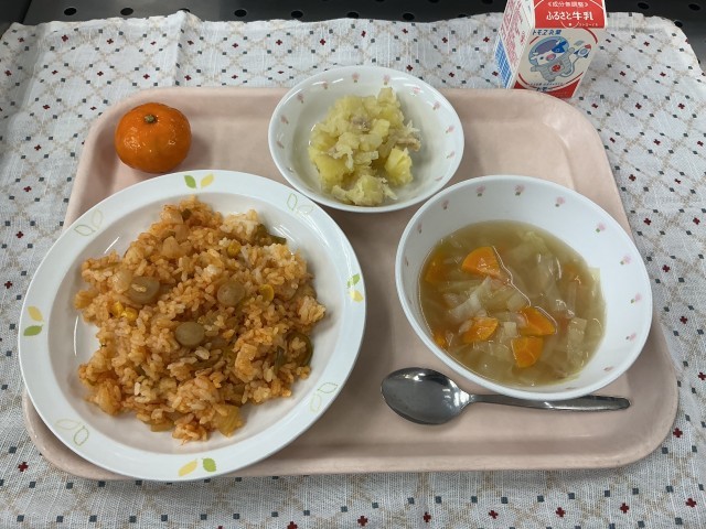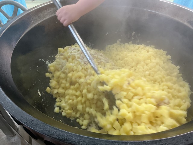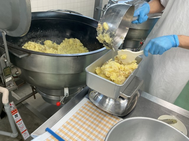 ※写真3枚目はジャーマンポテトをクラスごとに計量しながら配缶しているところです。