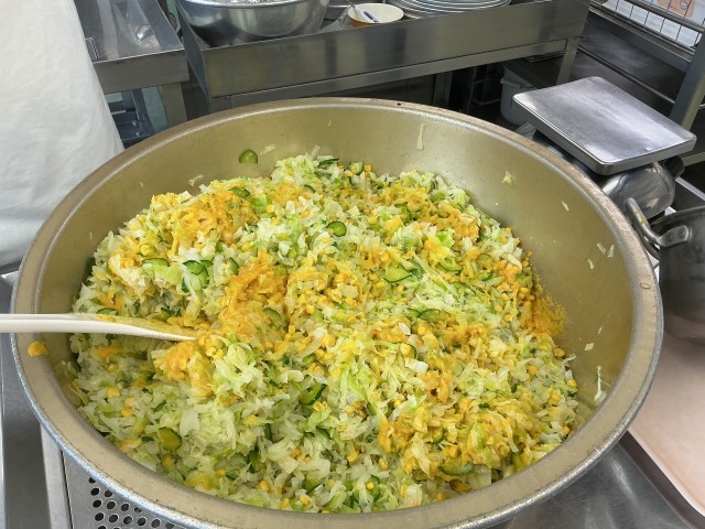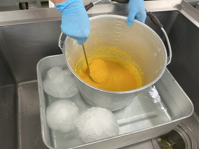 ※写真2枚目は、ドレッシングを冷ましているところです。給食ではドレッシングも加熱します。