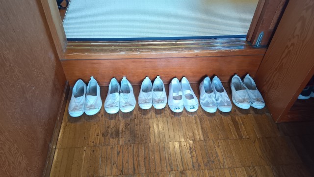 自分たちの部屋に入り、荷物の整理と予定の確認です。どの部屋も入口には靴がきれいに揃えてありました。