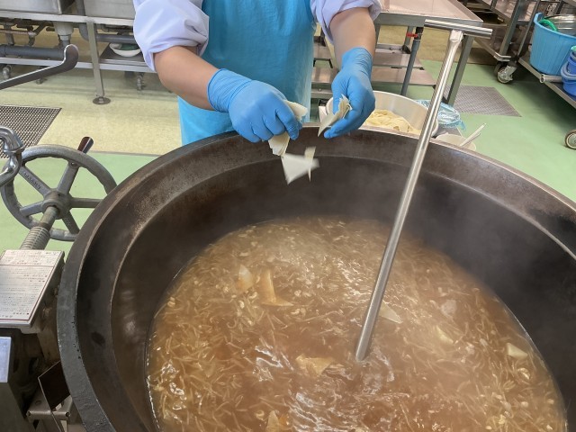 ※写真3枚目はスープにワンタンの皮がくっつかないように剥がしながら入れているところです。