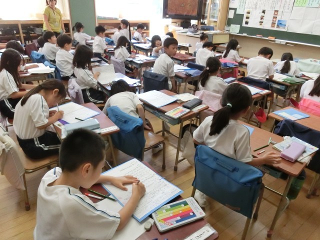 1年生は国語の授業でした。2学期になり1年生もしっかりと文字や文を書けるようになっていて嬉しく思いました。一つ一つの言葉や言葉の使い方を大切に国語の授業がすすめられていました。