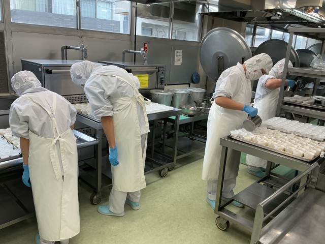 ※写真2枚目がは人気のりんごゼリーを均等に分けているところです。