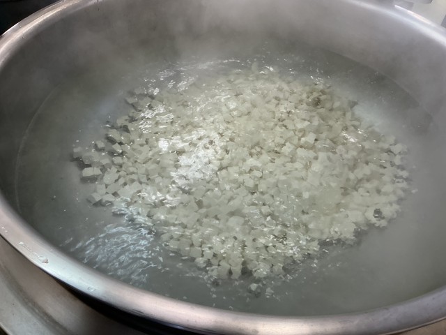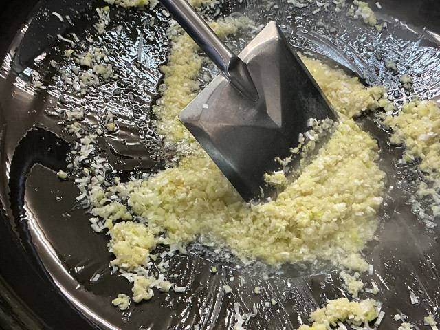 ※写真2枚目はにんにくと生姜を油でじっくり炒め香りを出しているところです。においをお届けできないのが残念です。