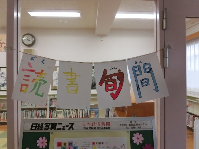 読書旬間が始まっています。図書委員と司書の先生、担当の先生が、みんなが読書を楽しめるようにいろいろな企画を考えてくれました。給食のメニューも本とコラボレーションしています。国語の授業でも読み聞かせやアニマシオン、ビブリオバトル等に取り組んでいます。本の世界をいっぱい楽しんでほしいです。