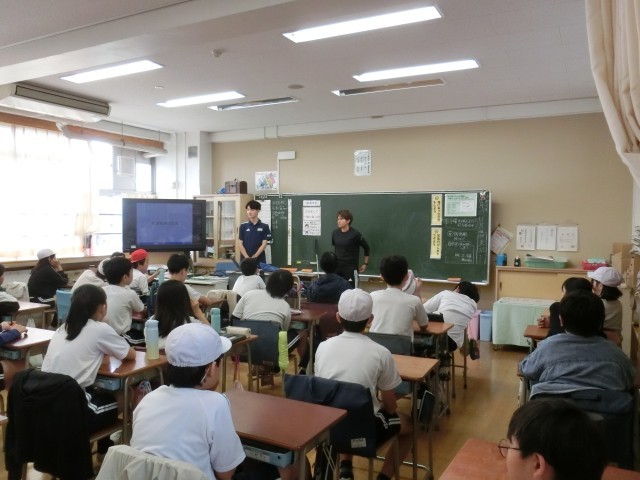 日本障害者サッカー連盟(JIFF)の方々を講師にお招きし、6年生が障害者サッカーを通じた「インクルーシブ教育プログラム」の授業を受けました。世界で活躍されている選手の方にブラインドサッカーのことや日常生活のことについてお話しいただきました。障害のある人もない人も、道具を工夫して使ったり人に頼ったりしながら、お互いに支え合って生活していることを教えていただきました。講義の後には、ブラインドサッカーをみんなで体験しました。