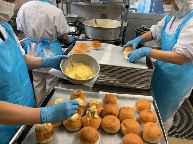 ※写真2枚目はパンを並べ、生地をのせているところです。