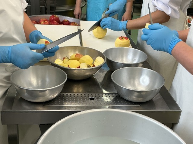 ※写真3枚目は白い柄の包丁を使ってりんごを切っているところです。
