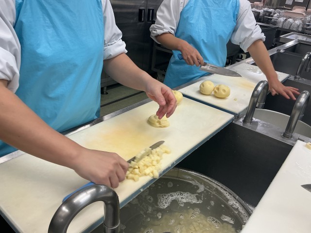 ※写真3枚目はミネストローネに入るじゃがいもを手切りしているところです。
