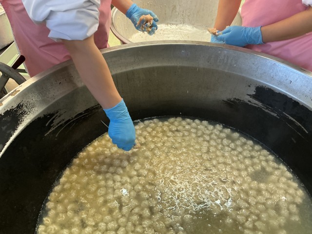※写真2枚目は肉団子を作っています。素早く、同じぐらいの大きさを作っていきます。