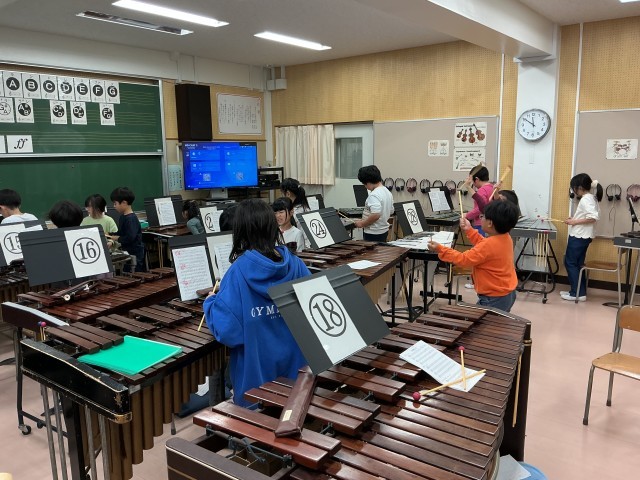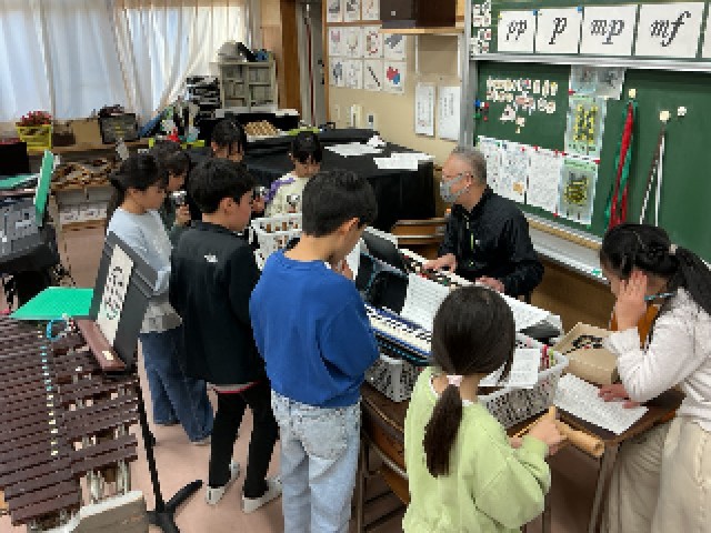 3年生の音楽の授業では、子どもたちが合奏の練習をしていました。各自、一生懸命に練習に取り組んでいます。練習したら、正しく演奏できているかを先生に確認してもらいます。「合格〜!」と先生から言ってもらえると、子どもたちはとっても嬉しそうです。子どもたち一人一人が主体的に楽しく学習に取り組める授業をめざしています。