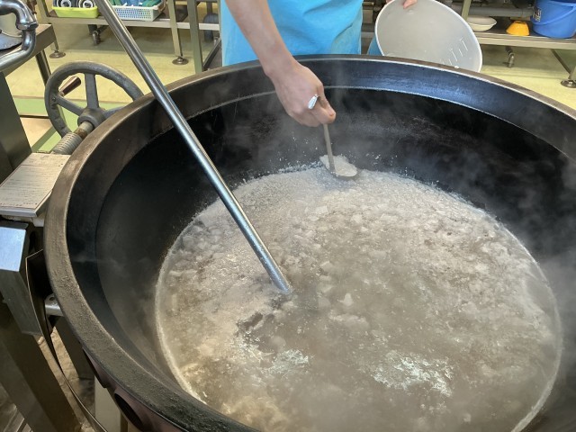 ※写真2枚目は豚肉を下煮しながらていねいにアクをとっているところです。