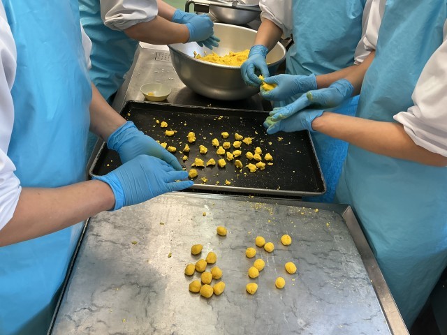 ※写真2枚目は冬至団子汁に入れるかぼちゃとじゃがいもを使った団子を作っているところです。