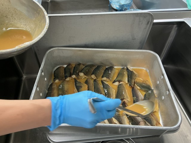 ※写真3枚目は焼いたサバの数を確認しながらゆずみそだれをかけているところです。