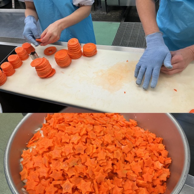 ※写真2枚目はスープのにんじんを星型に抜いているところです。スープのにんじんは全部、星型です(残りはキャロットライスへ)
