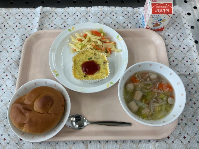 給食では一人分用の丸いカップで作りました。