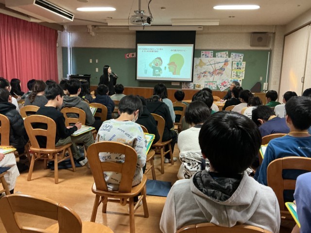 薬剤師さんと警察の方を講師にお迎えし、6年生が薬物乱用防止教室を受講しました。病院や薬局で処方される身近な薬も、量や飲み方を定められた方法で正しく服用することがとても重要であることを教えていただきました。また、エナジードリンクなど、カフェインの摂取などについても理解を深めました。子どもたちからの主体的な質問もいくつも出てきました。健康な心と身体のために身近なお薬を正しく使用できるように学びを深めました。