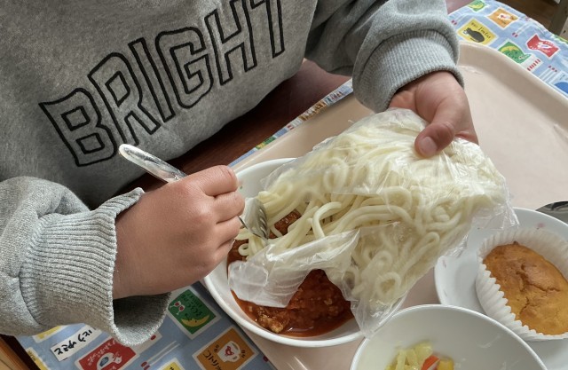 ※写真3枚目は1年生が袋をあけているところです。上手にあけてお碗に入れていました。