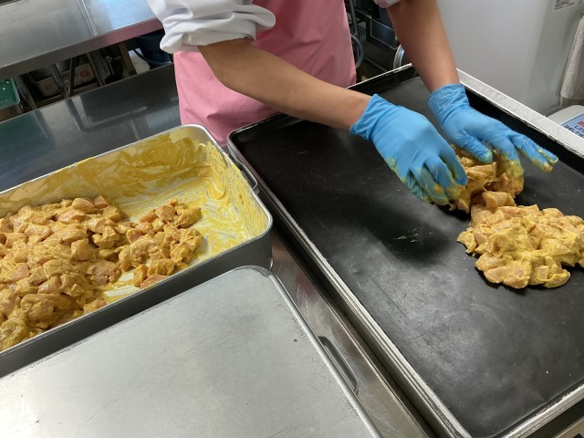 ※写真2枚目は漬け込んだでおいた鶏肉を天板に並べているところです。