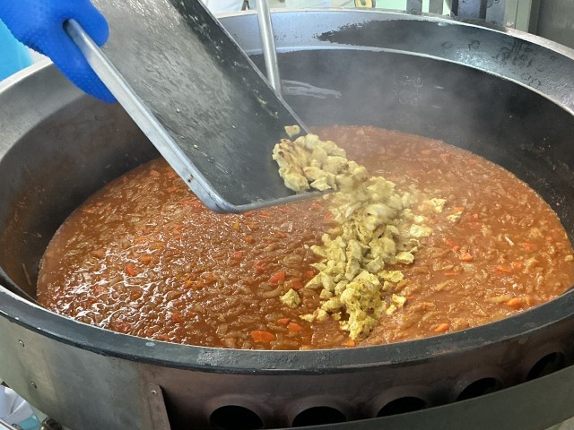 ※写真3枚目はオーブンで焼きあがった鶏肉をカレーソースの中mに入れているところです。