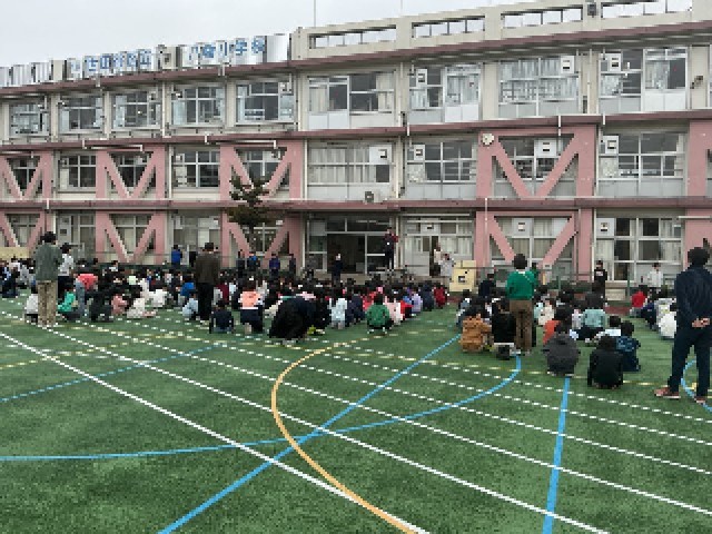 体育朝会において、全校児童で「じゃんけん列車」を行いました。1年生から6年生までが一緒になって、音楽に合わせて全身を使ったじゃんけんをしながら列車をつなげていくこの活動。校庭には、笑顔と笑い声があふれました。じゃんけんに勝った子が先頭になり、負けた子が後ろにつながっていくうちに、長い列車ができあがりました。高学年の子どもたちは、低学年の子にやさしく声をかけたり、手をつないでリードしたりと、頼もしい姿を見せてくれました。この活動を通して、八幡小学校が大切にしている「自分も他者も大切にする」心が自然とあらわれていました。ルールも簡単で、楽しく体を動かしながら、仲間とのつながりを深めることができます。休み時間などでも気軽に取り組める運動遊びです。学年をこえて、みんながひとつになれる時間。これからも、こうしたふれあいを大切にしていきます。