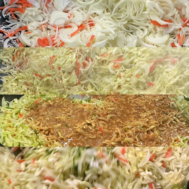 ※写真2枚目は野菜を火が通りにくい玉ねぎ、にんじんから炒め、キャベツを入れ、みそなどの調味料を入れ最後にピーマンを入れたものです。