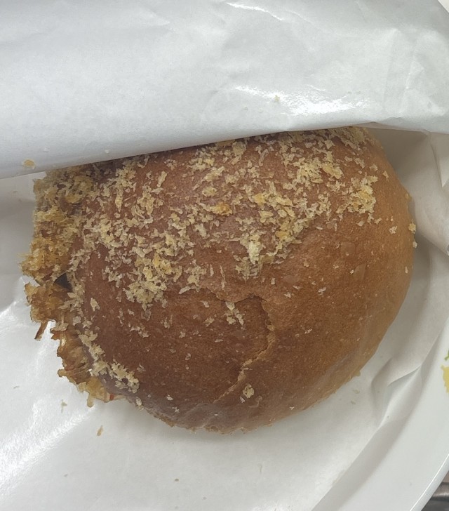※写真2枚目は横にスライスしたパンに具を入れ、あらかじめオーブンで焼き色をつけておいたパン粉をつけているところです。