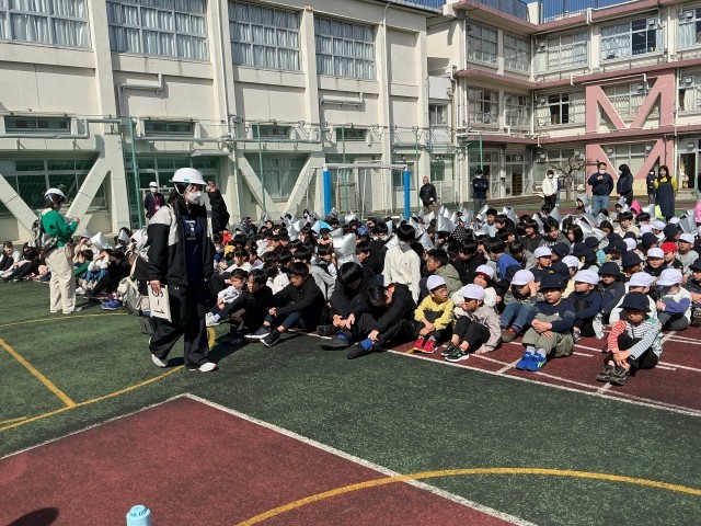 3月の避難訓練を行いました。今年度最後の訓練です。子どもたちにも教職員にも予告なしで実施しました。今回は休み時間に大きな地震が起こった想定でした。校庭をはじめ、学校のいろいろなところで休み時間を過ごしていたところから自分の身をしっかりと守らなければなりません。これまでの訓練の積み重ねの成果で、全員の子どもが安全に避難をすることができました。東日本大震災から15年となりました。皆で黙祷を捧げると共に、皆の安全を祈りました。