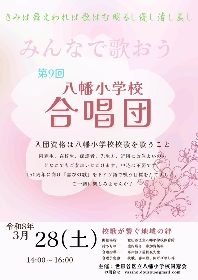 同窓会合唱団開催のお知らせ(9回目)