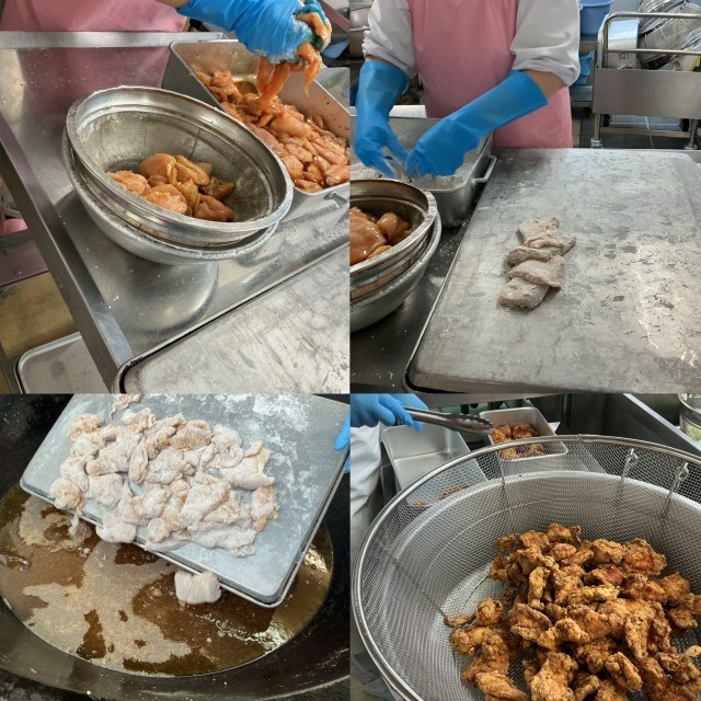 ※写真2枚目は6年生のリクエストでもある鶏肉のから揚げを作っているところです。
