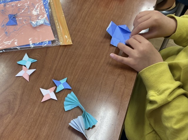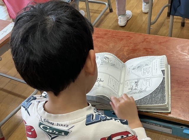 子どもたちは、それぞれの教室で本を読んだり、折り紙をしたり、絵を描いたりして、