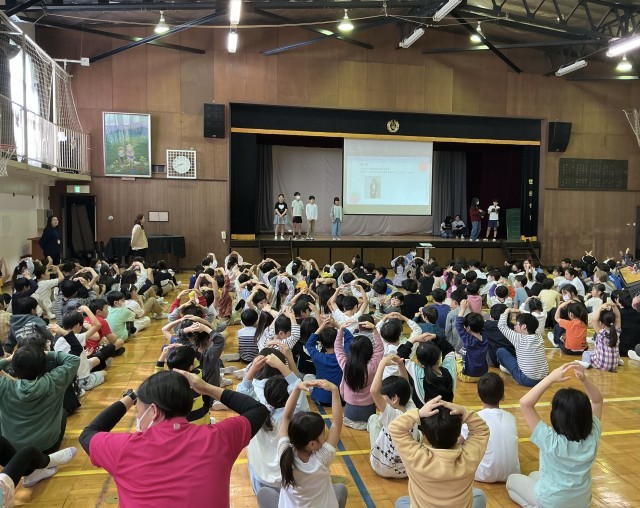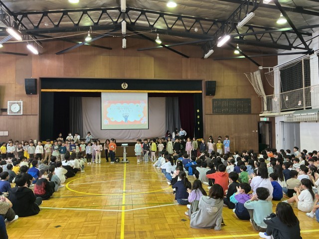 代表の子どもたちからの温かい「歓迎の言葉」や、1年生が学校のことを理解できるように工夫された「学校クイズ」、1年生のそばに寄り添って一緒にクイズに取り組む6年生の姿、体育館いっぱいに、八幡小学校の子どもたちの相手を大切に思う優しい心があふれていました。