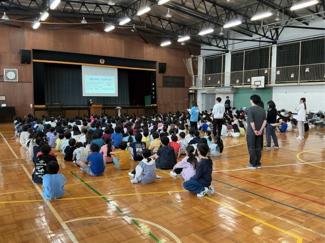 全校朝会を行いました。昨年度まではテレビ放送で行っていましたが、今年度からは体育館に集合して行っています。今日から今年度の6年生のスピーチも始まりました。自分の考えをしっかりと話してくれました。1年生から6年生までの全ての子どもたちが6年生のスピーチをしっかりと聞いて受け止めています。