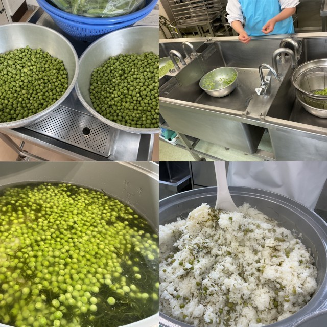 2年生がグリンピースのさやむきをしてくれました。