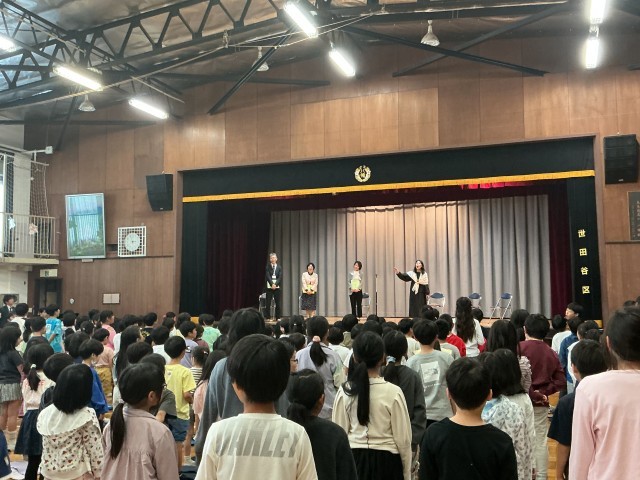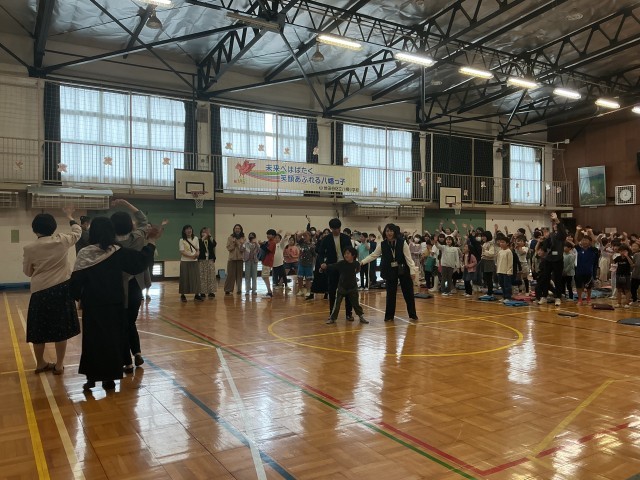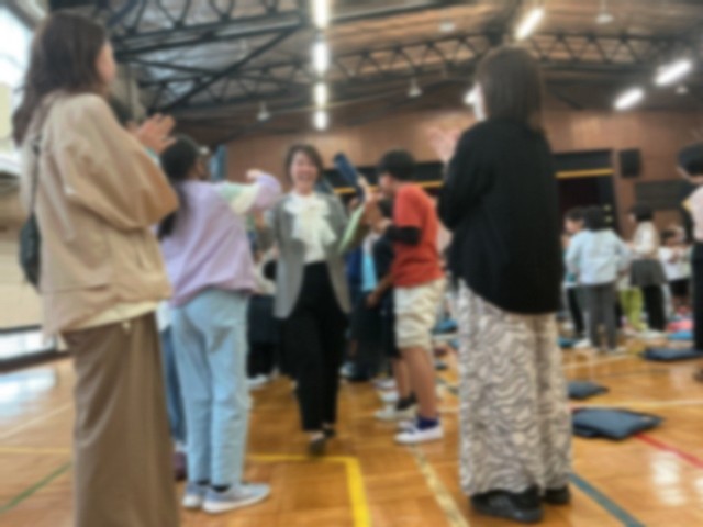 最後に、離任された音楽の先生の指揮で、全校児童が心のこもった校歌を体育館いっぱいに響かせ、先生方を送りました。