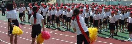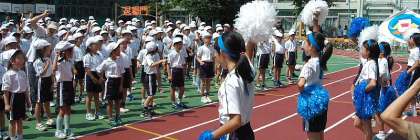 開会式の最後は全校児童が「運動会の歌」を披露。復活して3年目の応援係が前に出て盛り上げました。元気な歌声に、会場に朝早くから駆けつけてくださった保護者地域の方から大きな拍手が響きました。