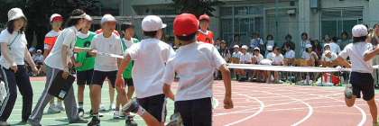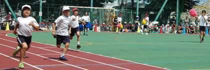 個人走の最後は3年生の80メートル走。赤白の勝負を左右するポイントのになりました。3年生らしい元気な走りに、応援席から大きな声援が飛び交っていました。