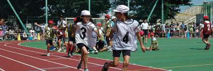 運動会のクライマックス。赤白の勝利を決める高学年代表選手によるリレーです。大接戦に応援にも力が入りました。