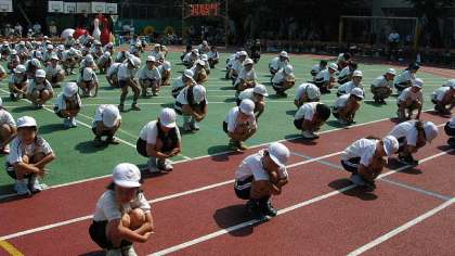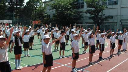 終わりの体操はストレッチ運動です。暑い校庭で、長時間頑張った子どもたち。最後まできちんと体操に取り組みました。さすが八幡っ子。すばらしい。
