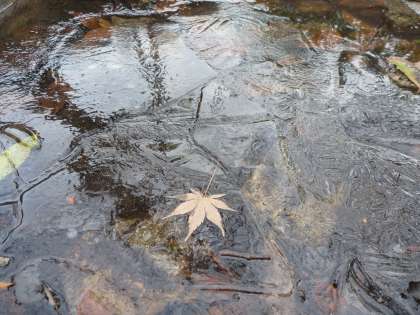 学校のハート池に氷が張っていました。それもけっこうな厚さで。子どもたちがいない学校は余計に寒さが身にしみます。