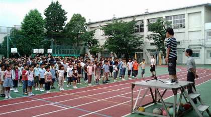 15日(月)、朝会で図書委員会児童2名が代表で、読書月間の取組みを宣伝しました。図書委員は図書室で本の紹介コーナーを開いたり、1・2年生の教室で読み聞かせをしたり活躍しています。