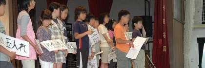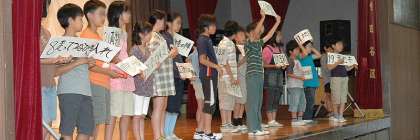 18日(木)朝、体育館で児童集会を行いました。運動会のプログラムを題材にした「ビンゴゲーム」を行いました。この日は、集会委員が司会・進行をマイクを使わずに行うことに挑戦しました。