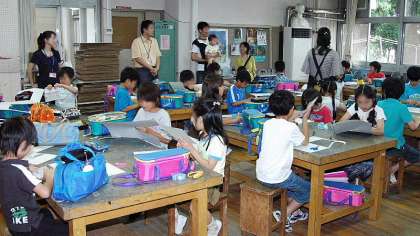 この日は日曜日ということもあって、多くのお父さんや地域の方も授業を参観してくださいました。普段はあまり見られない図工や体育に、保護者の方も、興味津々です。
