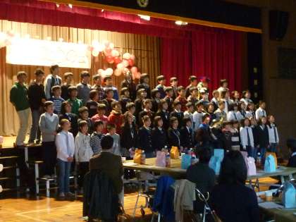 保護者の皆さんは裏方にまわり、子どもたちが前面に出て会が進行しました。それぞれが役割を分担し、多くの児童が司会、解説、歌、パフォーマンス等で精一杯頑張っていました。児童のみならず、先生たちや保護者の方々の目にも涙が浮かんでいました。