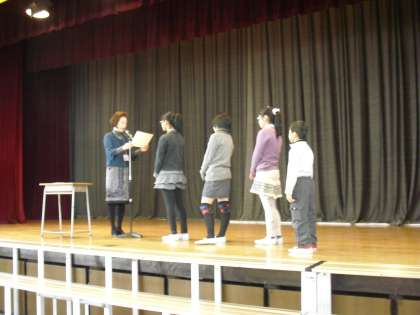 朝会で、世田谷の作文集、「さくぶん」に作品がのった児童が表彰されました。クラスの代表の児童も名前を呼ばれ、全校児童に紹介されました。